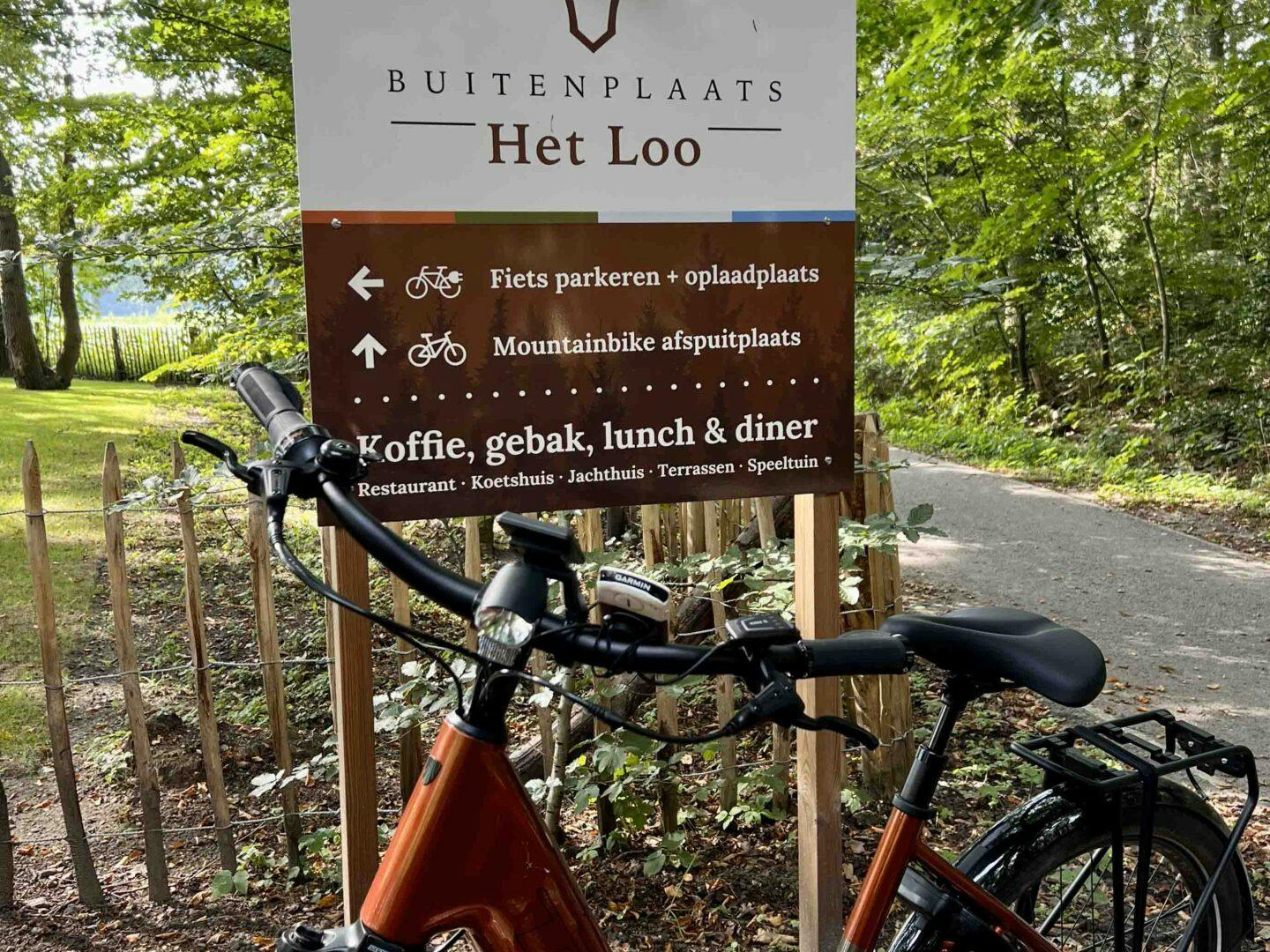 Al fietsend vergeten we haast dat we eigenlijk maar een heel korte vakantie hebben en houden dus snel halt bij – hoe kan het ook anders – de Halte. Ook dit smakelijke pareltje van de Veluwe blijkt weer heel gastvrij voor e-bikers te zijn.